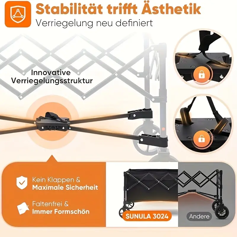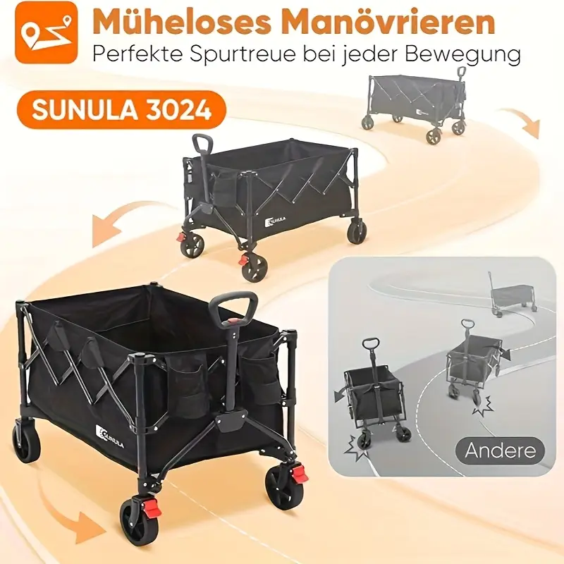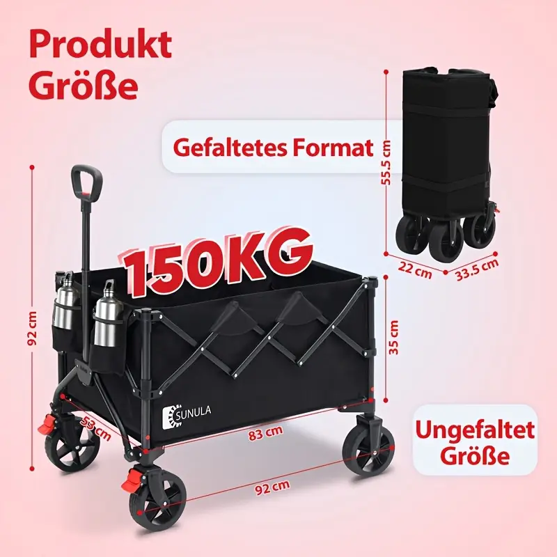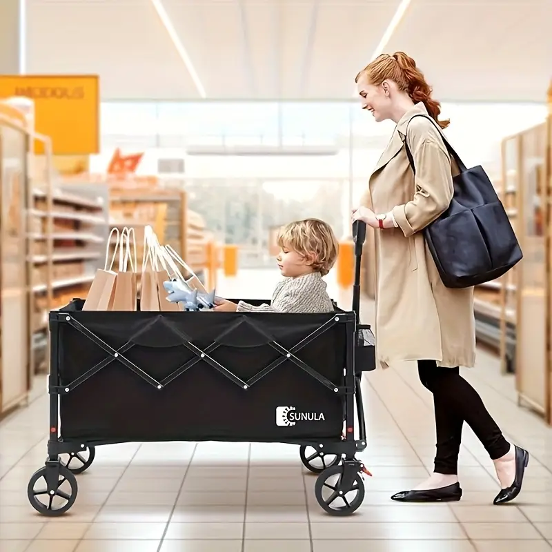 Sunula Collapsible Wagon Cart, Supports Up to 149.69 KG with A 300L Capacity, Oversized All-terrain Wheels for Sand, Grass & Gravel, Perfect for Shopping, Camping, Gardening, Beach Trips, And Outdoor Activities. Folds Compactly for Easy Storage.